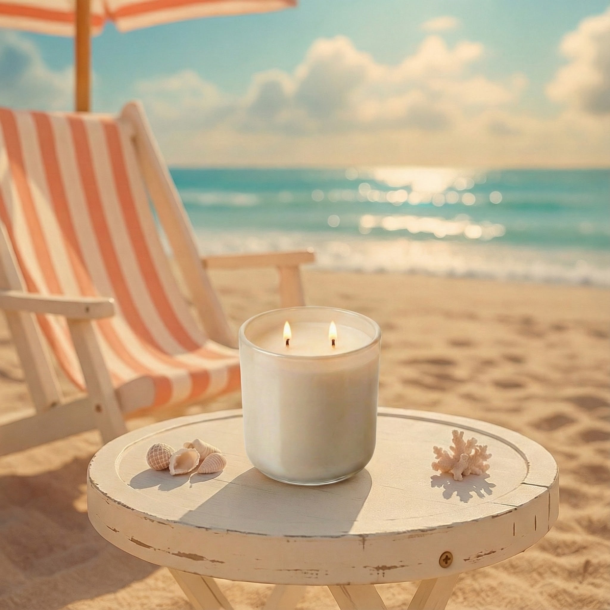 • Transport yourself to a sunlit beach escape with Beachside Dream, a luxurious addition to our Staycation Collection, inspired by the radiant essence of coral blush sands under the sun. Beachside Dream captures the magic of a coastal getaway, inviting you to unwind with the warm glow of a beach kissed by sunlight and lapped by turquoise seas. The beach theme in our Staycation Collection is designed to whisk you away on a vacation through scent, filling your space with the soothing serenity of a tropical shoreline.