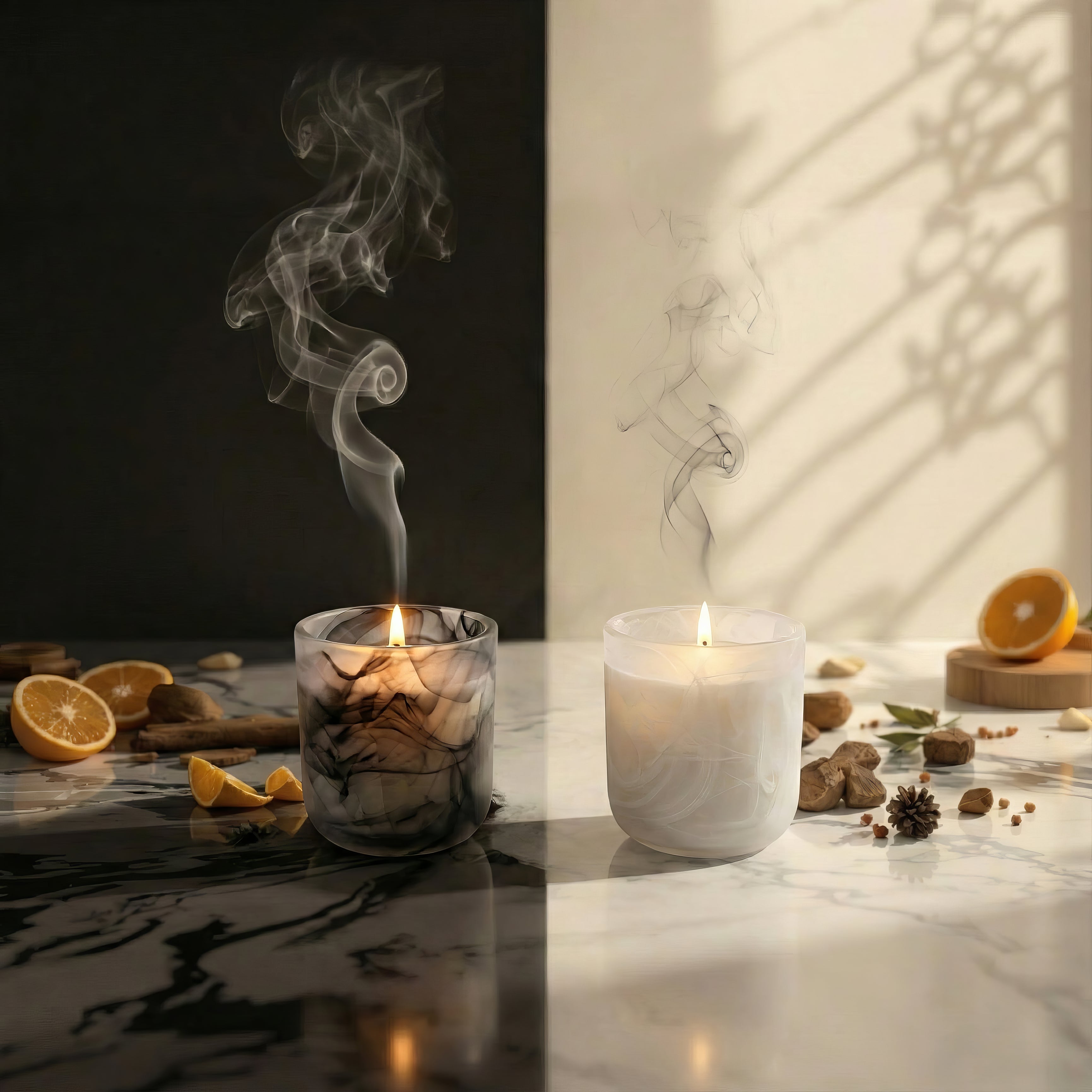 Light Shadow (Yang) ignites the energy of movement with a sophisticated blend of creamy white sandalwood and smoky, resinous burning embers. Hints of rich woods conjure images of opulent adventures, infusing your space with warmth and elegance. Ideal for sparking creativity or enlivening social gatherings, Light Shadow radiates vibrant luxury, complementing its Yin counterpart to create a dynamic balance.
